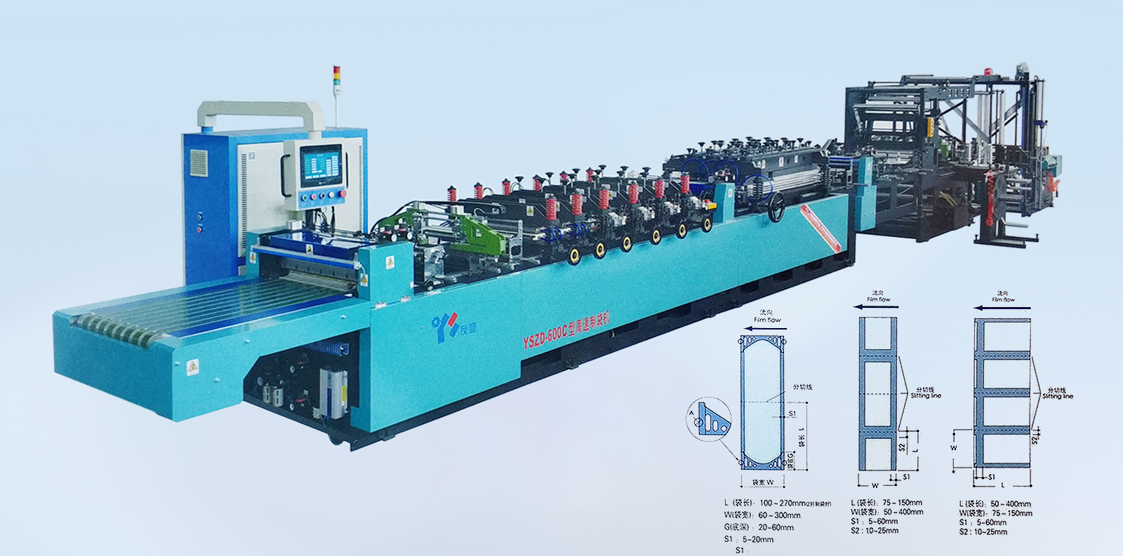 YSZD-400B Ⅱ中封、三邊封、四邊封高速全自動制袋機 YSZD-300/400/500ZF中封、側(cè)封、四邊封高速全自動制袋機 YSZD-500ZF中封、側(cè)封、四邊封高速全自動制袋機 YSZD-500/600/700/800/1000H三邊封高速全自動制袋機 YSZD-600C無接縫站立袋三邊封、站立袋高速全自動制袋機 YSZD-500HK三邊封、站立袋、拉鏈袋、無接縫站立拉鏈袋、儲料架高速全自動制袋機 YSZD-600HB三邊封、站立袋、拉鏈袋高速全自動制袋機 YSZD-600HK三邊封、站立袋、拉鏈袋、無接縫站立拉鏈袋高速全自動制袋機 YSZD-600HK Ⅰ上下圖案跟蹤三邊封、站立袋、拉鏈袋、無接縫站立拉鏈袋高速全自動制袋機 YSZD-600HK Ⅱ CCD視覺定位裁切三邊封、站立袋、拉鏈袋、無接縫站立拉鏈袋高速全自動制袋機 YSZD-800HK三邊封、站立袋、拉鏈袋、無接縫站立拉鏈袋高速全自動制袋機